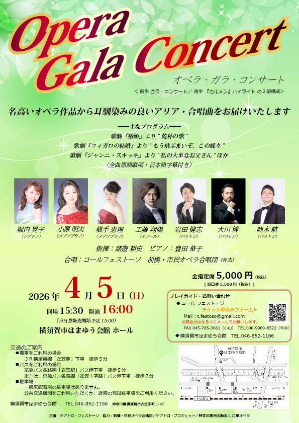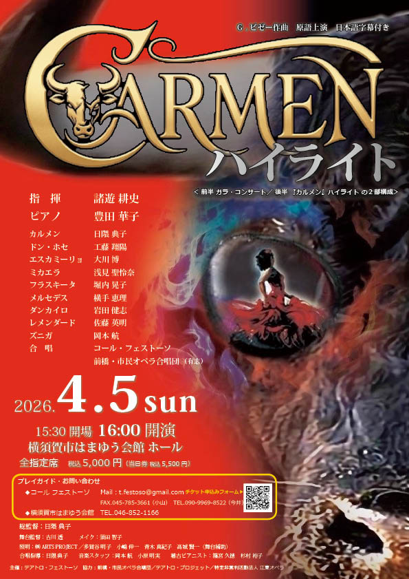 来る4月5日(日)・横須賀市はまゆう会館にて、『オペラ・ガラ・コンサート/歌劇『カルメン』ハイライト』を上演させていただく運びとなりました